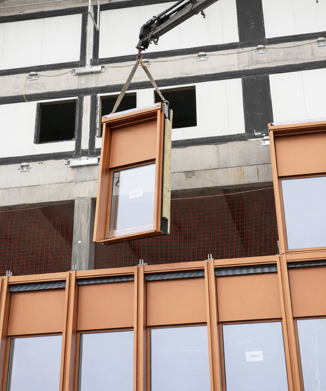• Une méthode d’installation étage par étage est utilisée, donc, grâce au gabarit d’isolation thermique caché, les travaux de finition peuvent être réalisés à un stade précoce.