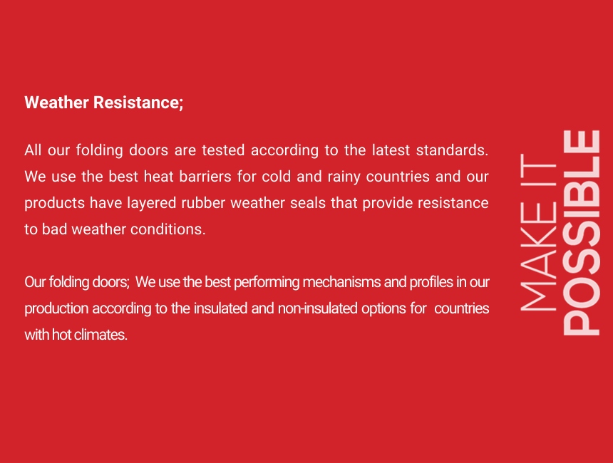 Les systèmes de portes pliantes à isolation thermique offrent une isolation de haut niveau, des performances élevées et une grande fonctionnalité. Leur design minimaliste et leurs ferrures, spécialement développées pour les systèmes pliants, garantissent efficacité et élégance.